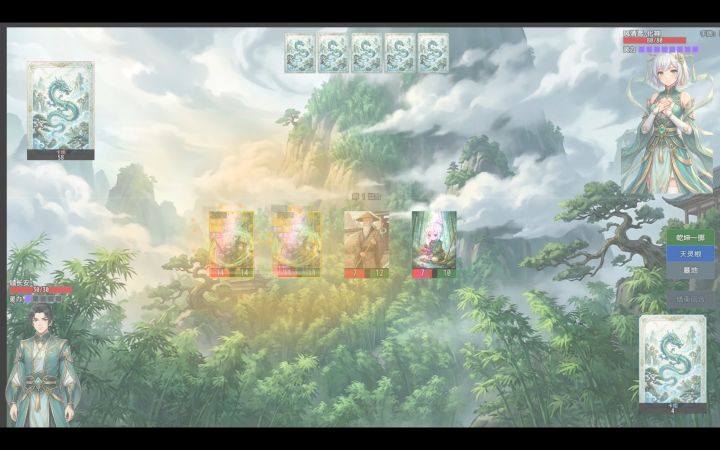 要求灵力4以上 采药灵童*3 灵竹小守卫*3 灵竹指引*3(防卡手牌,缺的话可换别的加血上限牌,就是运气不好得重开) 竹海听涛•真*1(打大师姐带着较好清杂怪,非必要)
