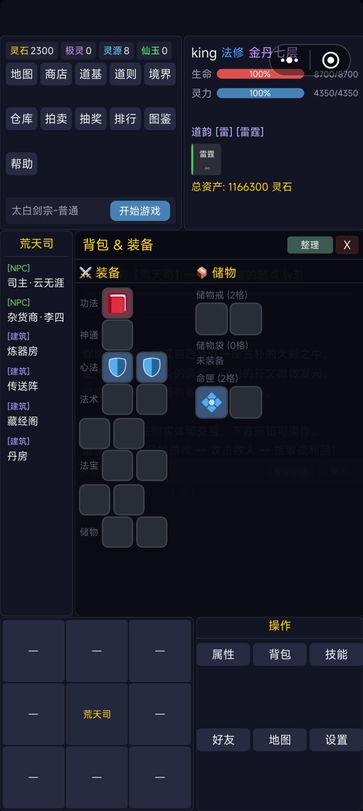 技巧就是:最好是还有秒数的增益buff去打 冲进那个怪物怪物堆里然后点群殴 把太白金仙也群殴在里面 如果是越级打的就不要自动战斗因为系统随机会用普攻 正常越级打的话,点一个群攻 直接全秒 如果没秒掉的话 等于你这次被剑仙打死了 法宝的话我装的是四个紫法宝,我的道基本全了 有两个紫道基无伤大雅