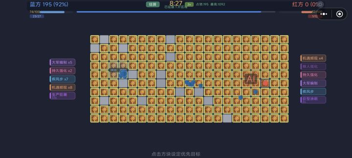 版本更新时,老玩家进入游戏时请退出重进!才能玩到新版本,如果在旧版本中进行的一些操作,到新版本时你的种种操作都会丢失!本次更新如下:1.双方领土比较难以区分。(可以在设置中自定义区分强度)2.对局中叠加属性问题,只能1%的加。(已将技能描述修复了)3.无主之地无法占领。(已处理)4.烈火之触,太强。(已削弱)5.无尽新模式:无尽贪婪(已添加)6.纷争模拟中加注选项改为100,1000