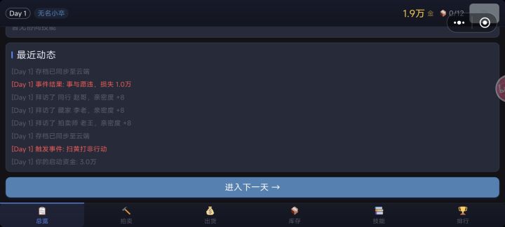 一切操作完,点总览偶尔会出现事件,重复以上操作就是这个游戏目前的玩法