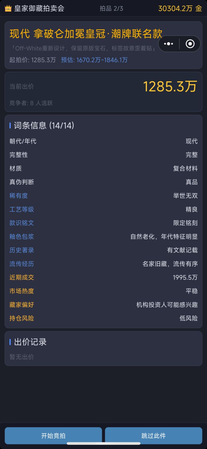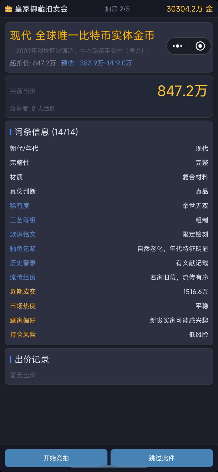 1.修复了玩家放弃竞拍自动获得藏品的BUG2.降低了NPC出价的概率3.新增终局玩法 【博物馆】,玩家可通过博物馆提高声望上限,展示镇馆之宝,参与排名竞争。 让我们看看谁才是真正的收藏之王!