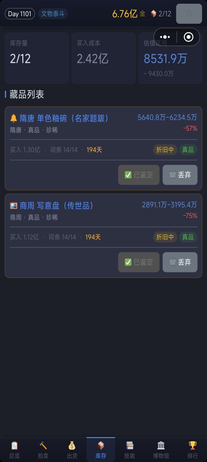 说是试玩版,意思是现在的内容还不完整——文物种类、玩法、随机事件都还在补,数值平衡也没最终定。但核心玩法已经跑通了,词条迷雾、拍卖竞价、随机文物这些都可以正常体验。我们现在最需要的是真实的游玩反馈,所以把这个版本放出来。玩完之后有什么想说的都可以回帖,不管是——- 某场拍卖感觉节奏不对- 词条信息给多了/给少了- 某件文物估价感觉离谱- 界面哪里看不懂- 或者就是单纯觉得哪里不爽都