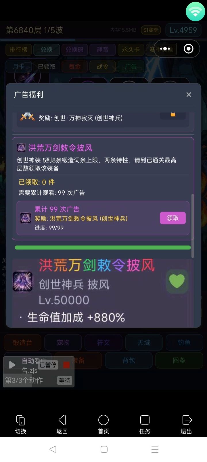 贪婪秘境增加自动挂机。提高玩家和boss基础血量3倍。新掉落装备的生命值加成数值提高了2倍,算下来玩家生命值至少提高了6倍。 各位先帮忙测试几天。