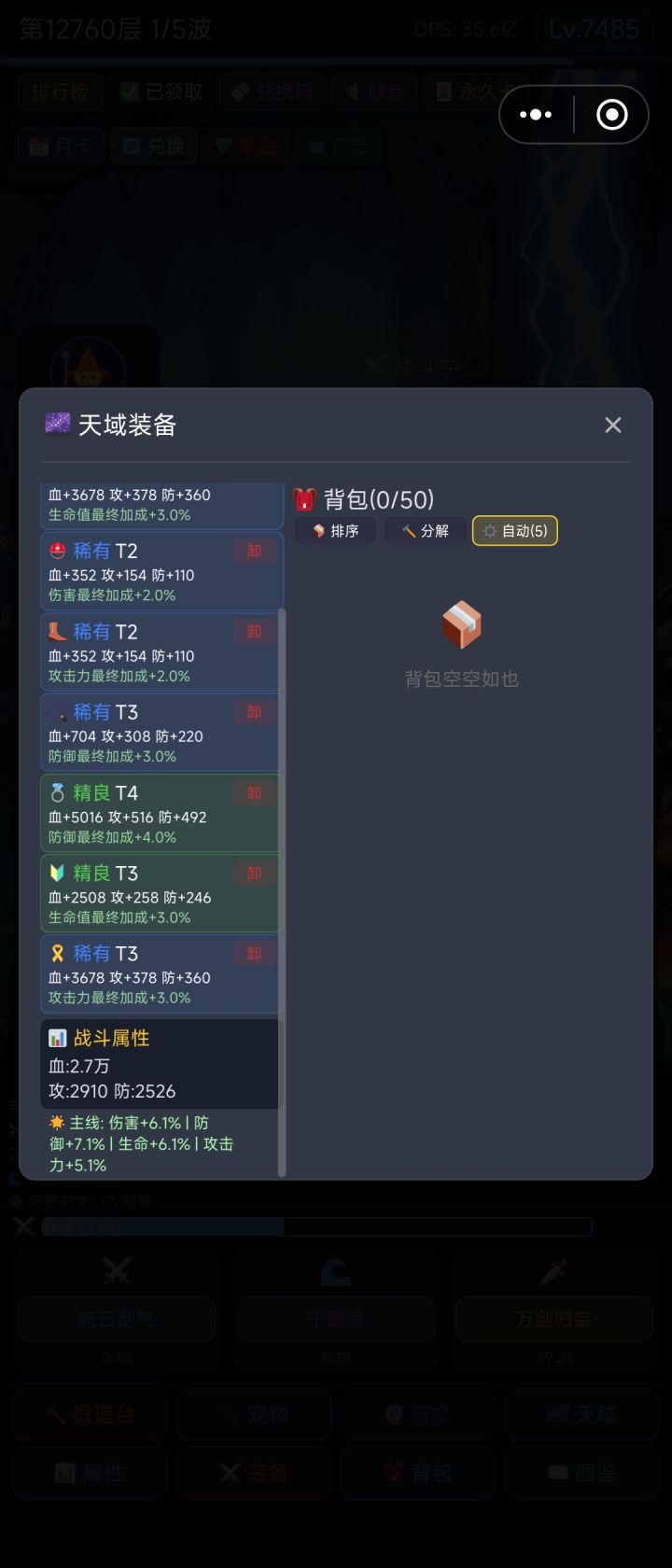 天域玩法上线测试,本玩法为规规矩矩的放置玩法,流程较慢,收益很好,天域装备的词条都是属性总增祝大家玩的开心!边测试边修吧