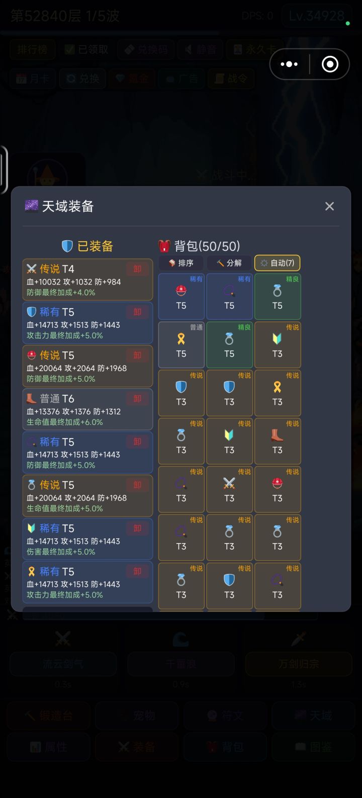 1.增加了天域托管功能。2.天域装备自动分解,同时选了等阶和品质,需要同时满足这2个条件才分解。3.说明:各位,1000万攻击力触发次数统计功能,是昨天晚上开始新加的,昨天晚上开始统计的。以前已经触发了效果,没有统计到。4.天域数值有非常大的问题,正在改!!!