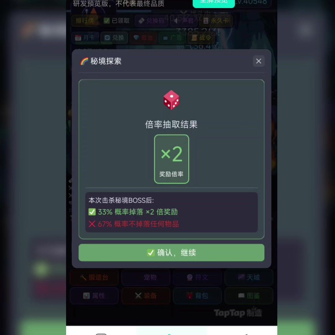第一个秘境出门票。洪荒秘境出装备测试下,看有没有bug