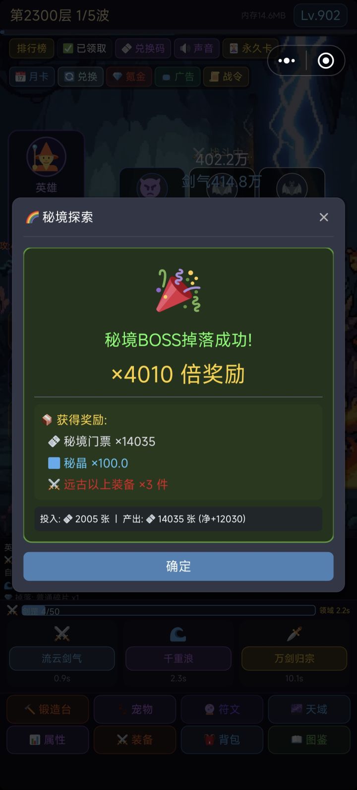 第一个秘境出门票。洪荒秘境出装备测试下,看有没有bug
