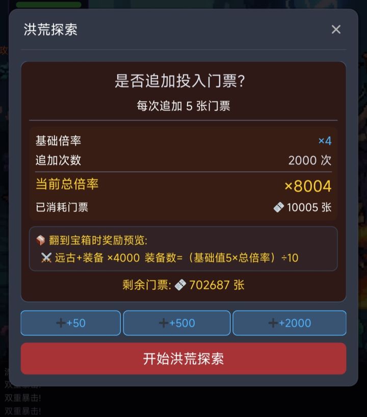 这个秘境探索不是随机的,有的时候是必定成功的,找到规律后几个小时从4,5万票刷到了170万,秘晶也刷了不少。规律是:1,从第一次失败算,前三次如果都失败,第四次如果是2倍,那百分之90以上都是成功。2,如果第四次不是2倍,就不一定成功,如果第4次还是失败,第五次如果是4倍的话就基本都会成功。3,如果第五次还是失败,第六次不管是多少倍基本都会成功,极小的几率不成功,但第7次和第八次也会有一次