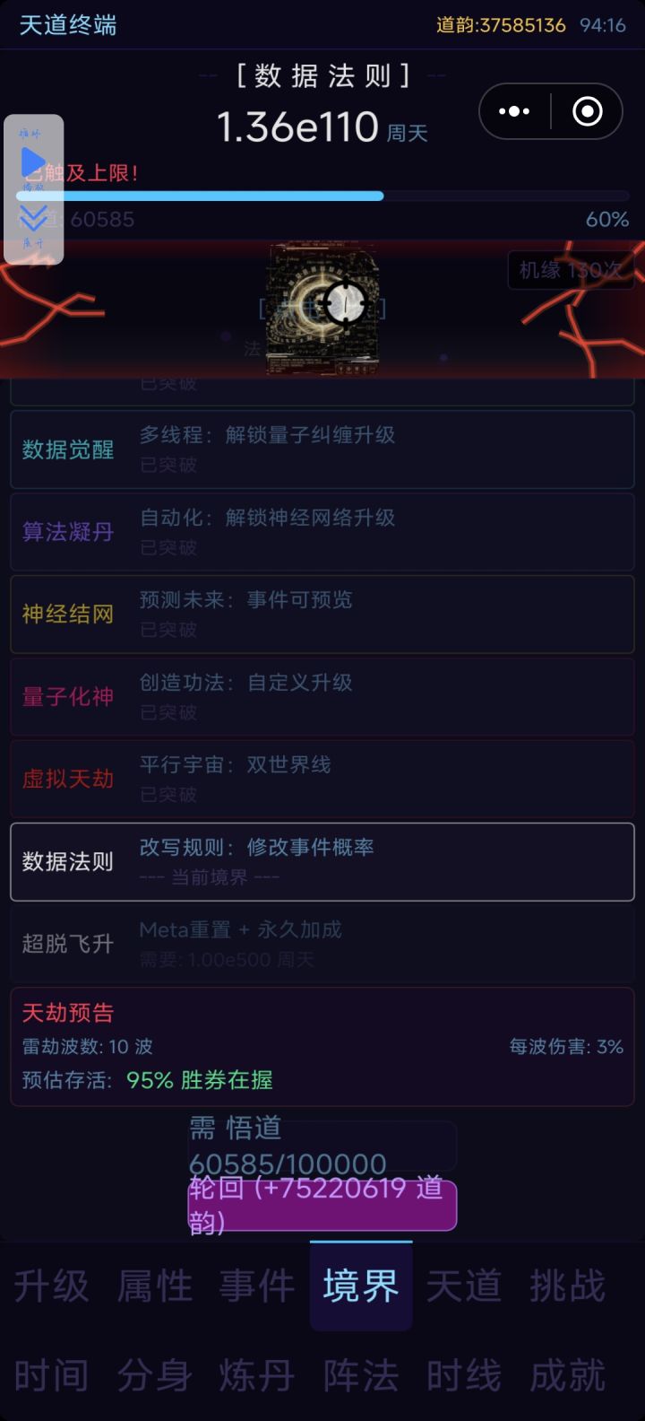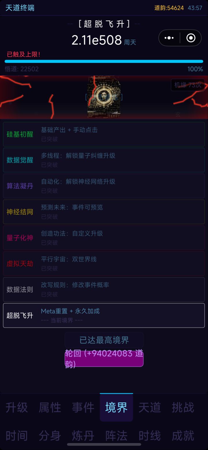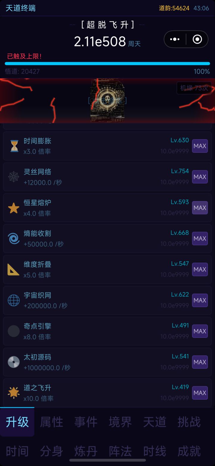 指数爆炸的修为,但悟道的加成基本只能靠分身和天道以及时间加速加成,只能卡住。稍微期待一下后续更新的内容吧。