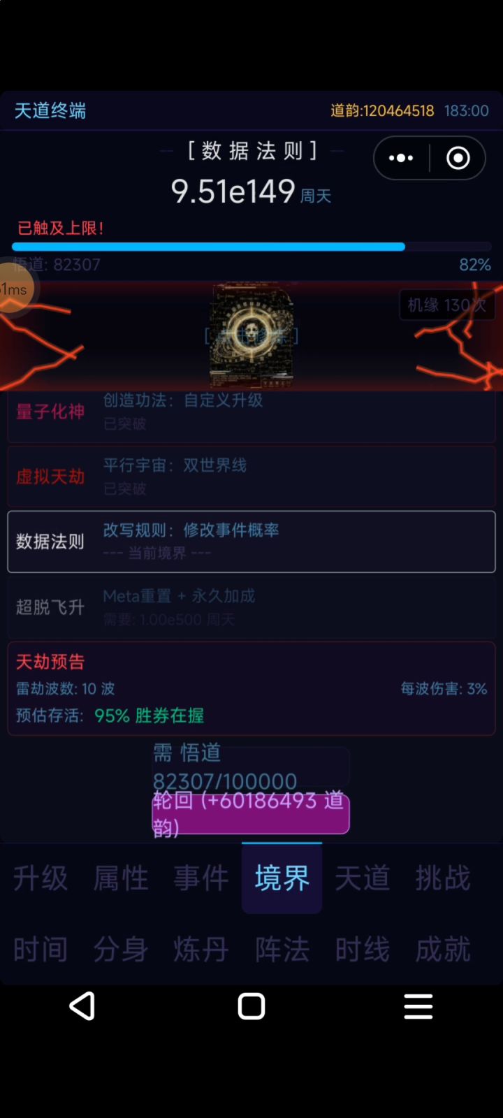 为啥呀,飞升轮回四五次了境界最高是法则还是没显示