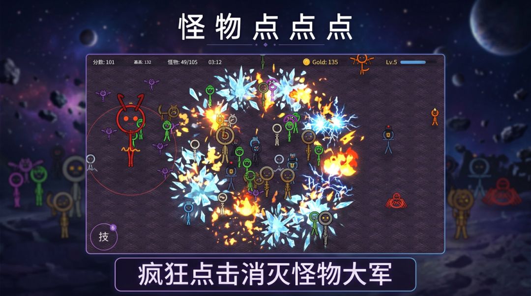 疯狂点击消灭怪物,收集经验升级技能,挑战更高积分!简单上手,越玩越上头的休闲点击游戏。