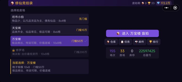更新修复了字体太小的问题,新增了修罗场最低价惩罚,但是出价随机性不够。ai出价不是特别高就是特别低,出价3万3不用点技能无脑刷就行