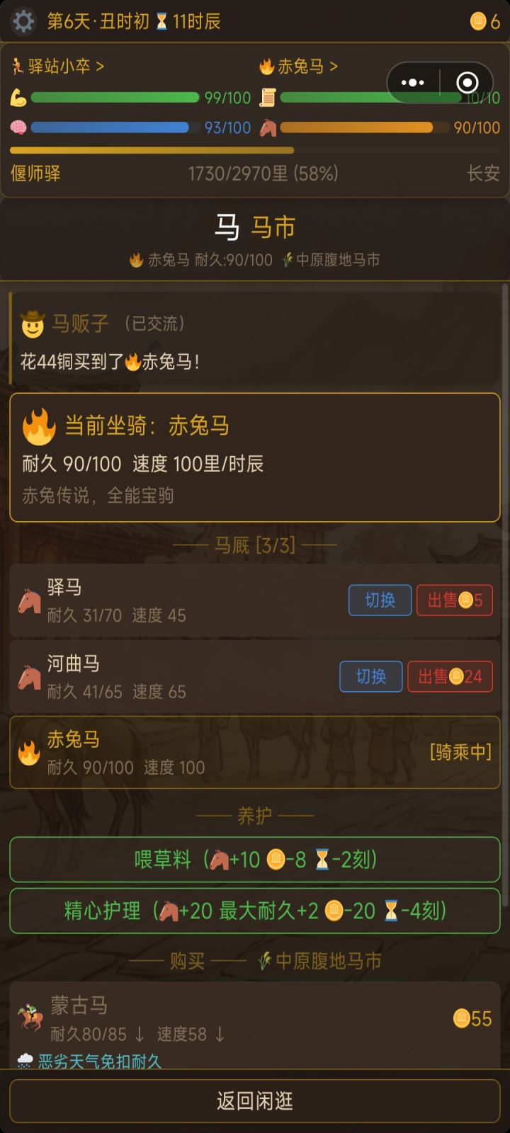 第一次玩,44铜币买到了赤兔。。