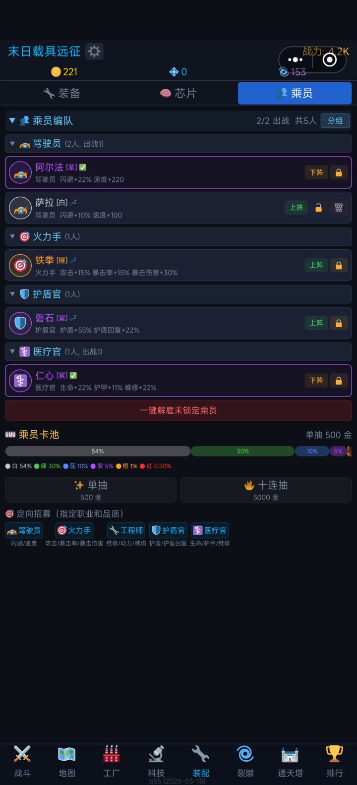1、优化工厂页面批量生产队列太多延迟卡顿问题2、优化加速商城页面布局3、科技研究页面增加所有未解锁装备、载具的属性详情
