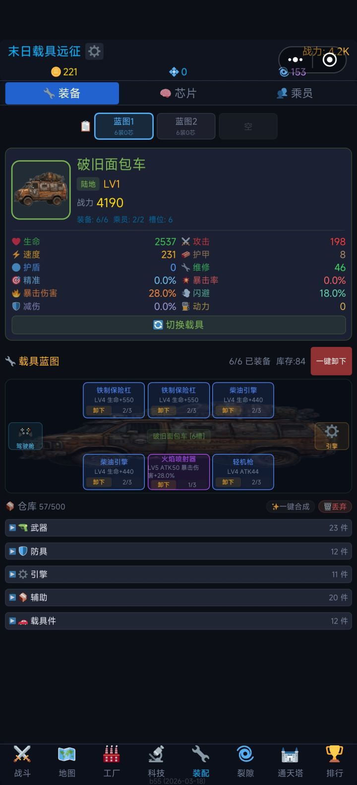 反正我才刚打到第二章,车子是升级不了了,要好几个配件都凑齐6千多个才能升,载具是直接上机枪和加生命的东西了,萌新不太会玩的可以稍微参考一下我这个,会玩的可以指导一下我