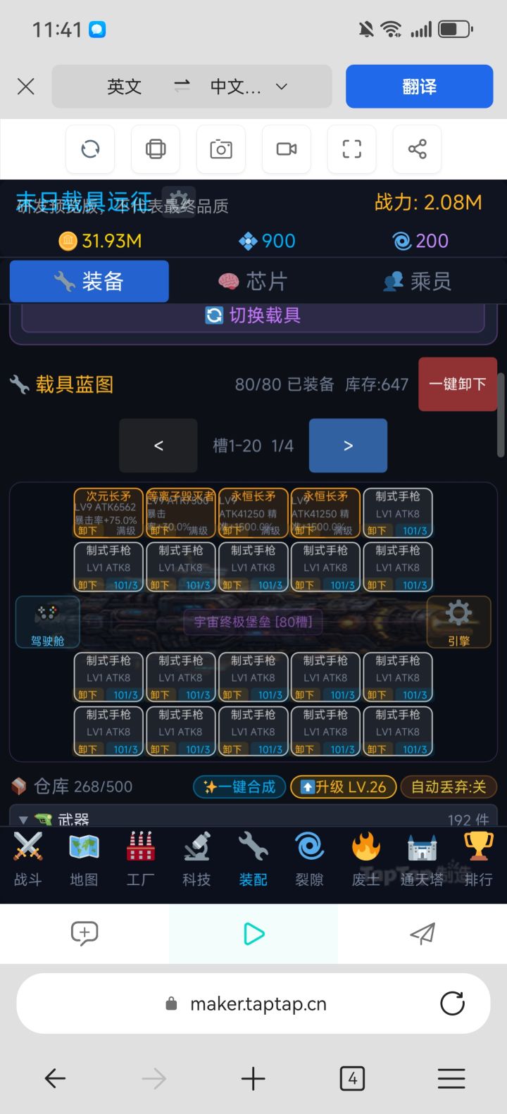 1、蓝图分页显示:每页 20 个槽位,翻页浏览2、裂隙核心库存显示:工厂材料库存页新增裂隙分类,始终显示三种核心数量3、全部装备按钮:仓库中堆叠装备卡片新增"全部"按钮,一键装备所有同类装备4、boos穿甲技能效果修正