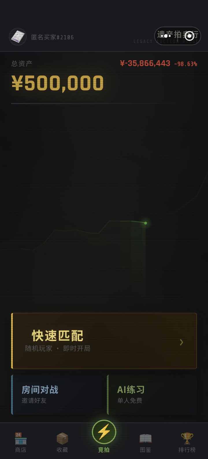 快万亿删档了,真是由俭入奢易由奢入俭难。。。更新后匹配到底还有没有人机,玩的也很揪心,不洒钱正儿八经去竞拍攒的慢,低级房间出货率太少,给的buff一目了然,都是踩着线竞拍为了那几两碎银,甚至进门费都赚不到,洒钱吧容易膨胀,全是一秒党,死循环了,端游有人物角色和技能特点来平衡竞拍、丰富游戏内容,手游暂时做不到,觉得排行榜和id头像还能搞点竞争,我那头像图片都裂开了,能看id竞拍,我进去直接给大佬投降
