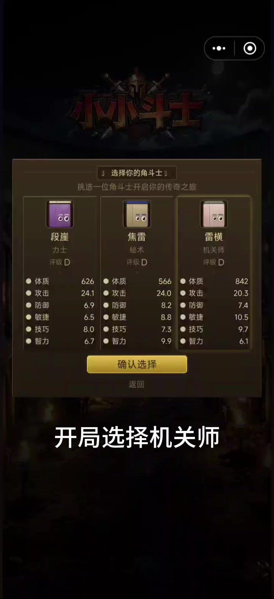 重启游戏自动更新,请核对版本号!!!【小小斗士 v1.0.40 更新公告】⚔️ 各位斗士大家好!新版本已更新,主要内容如下:🔨新增模式:新增休闲模式更简单的模式,方便新手玩家了解游戏玩法。🔨 酒馆改版:增加更多槽位,降低难度。酒馆现在每次刷新六位装备每次刷新八件🎁 新功能:每日盲盒商城新增"每日盲盒",每天可看广告免费开启一次(不参与免广!)随机获得角斗士或装备,品质参照商城刷