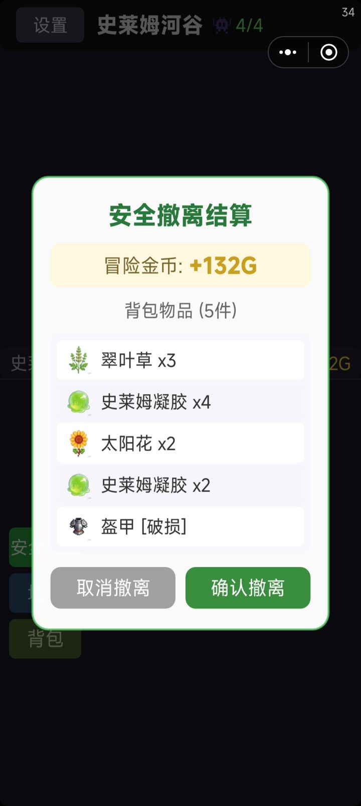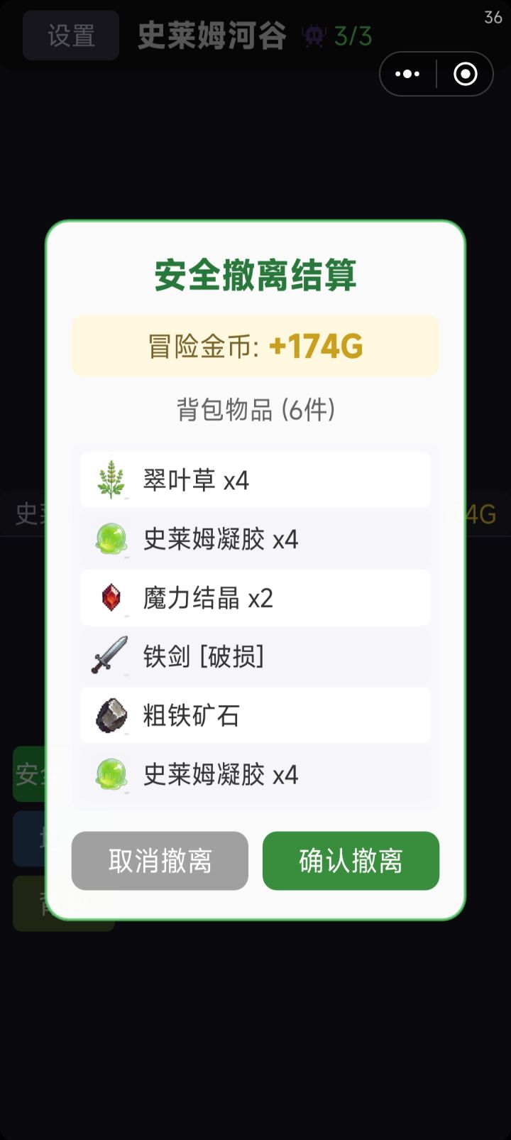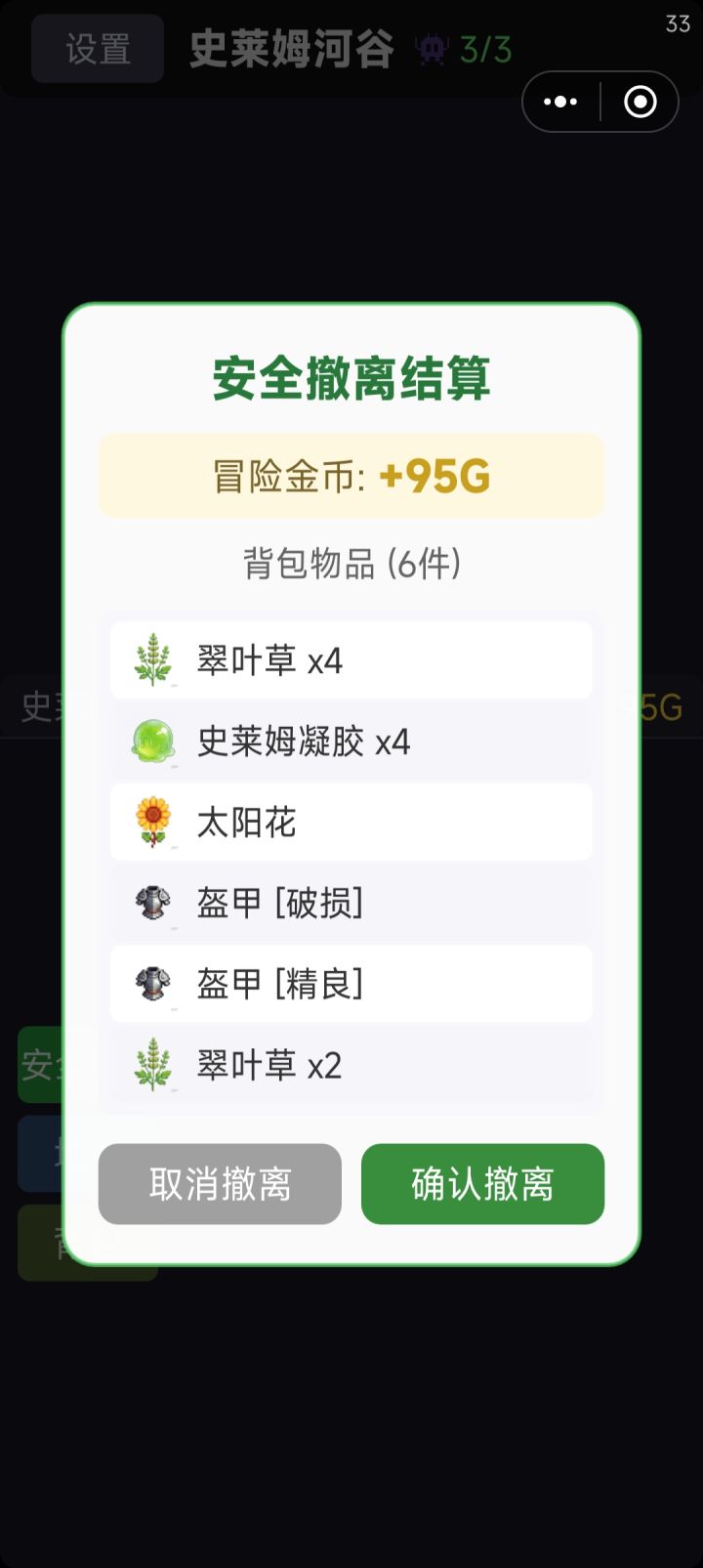 比之前冒险模式提升很大,但是相对而言难度指数系提升,boss血量掉到一定程度会跳的圈变大,这个不是问题,问题是能在本来圈大小突然变大,这有点防不胜防,不过这也还好。主要是小史莱姆刷的位置离得太近,能直接堵死一条命,现在冒险模式相对来讲是前期最好获利的,附带了5张结算图,感觉冒险模式也可以加一些采集元素?装备现在还是不能带,有群聊吗,想一起讨论讨论,还有就是看看老师准备怎么做。顺便一提