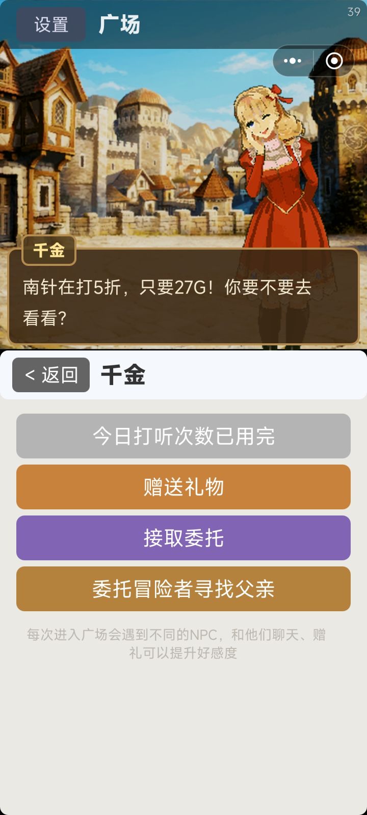 好感度目前只是做了个壳子,好感等级高了之后NPC携带的基础金额会上涨。(NPC会有一个钱包,商品的成本价超过了他就买不起了,好感度可以加这个钱包的额度。)。后面打算加一些事件,比如广场上NPC有概率卖或者送东西,或者发布一些几天后取货的委托。好感度或许可以和这些关联上。礼物表感觉可以有。后面和图鉴UI优化一起上。