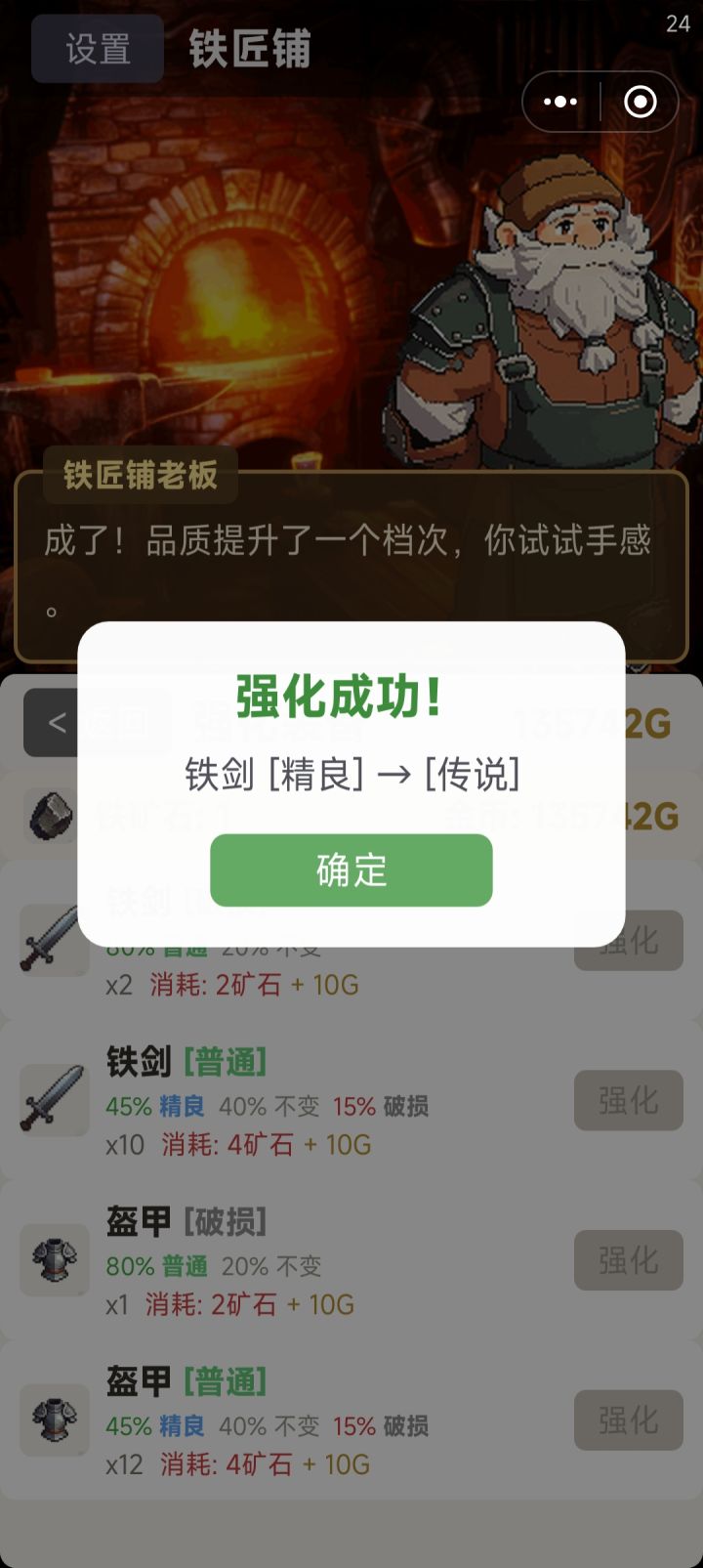 是的,因为冒险模式还没做好,装备系统也只是徒有其表。后面会增加装备品类,以及对高级品质作出价格调整,以及重新设置铁矿石的购买限制