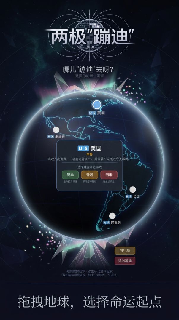 3D地球仪选择出生国家,体验2D卡牌生存冒险