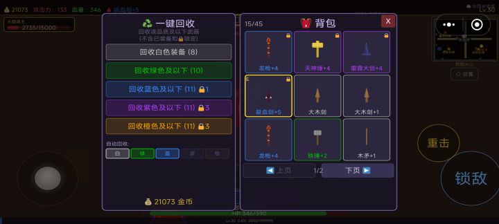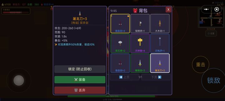 有吸血装备,是蓝装。今晚修复了一些小bug,增加药品购买和使用。