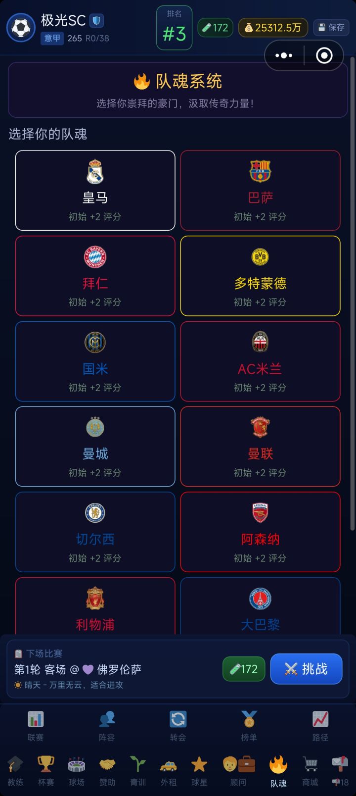 更新内容 1.增加队魂系统,可以选择一支豪门球队作为队魂(总共12支,技能效果不同,队魂经验每个赛季结算时根据联赛等级和排名增加) 2.增加新超级赞助商-沙特土豪 3.超级赞助商改为浮动奖励,不再固定 4.修复若干bug 更新福利已经发放,Q群有资源兑换码,加Q群696339130 来自TapTap[ID:31193270 手机用户311