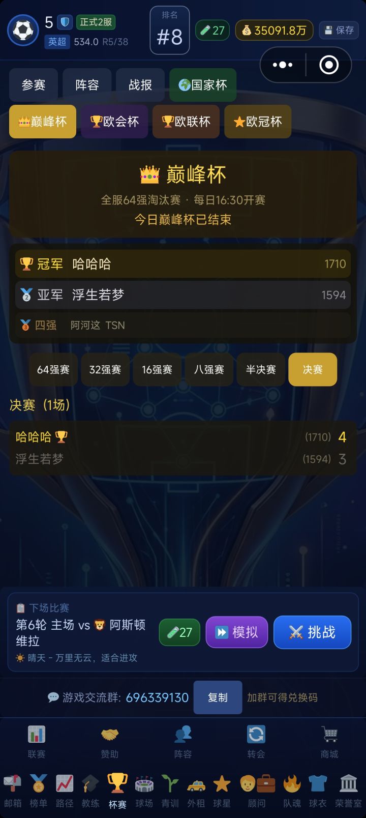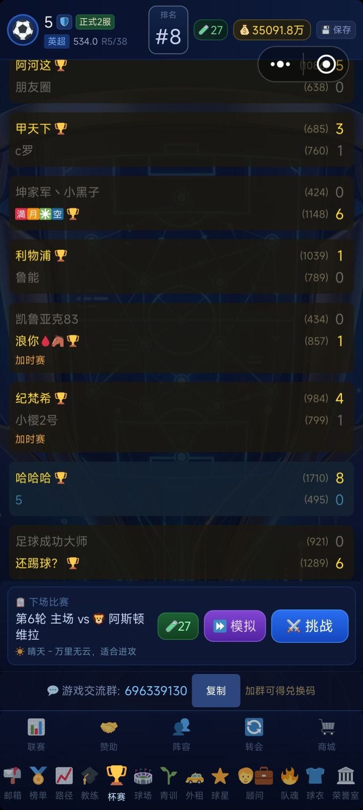 更新内容 1.增加新区服,正式2服2.增加赛季模拟功能,可以直接模拟到赛季末(护肝)3.修改名人堂记录球员32岁时评分4.增加队魂等级上限为10级,解锁10级队魂技能5.修复若干bug 模拟和挑战要看广告的情况已经修复,大退taptao重进就可以。玩家对战时代开启,准备好争夺最高荣耀了吗??周四10点左右开放新区正式2服,敬请期待~ 来