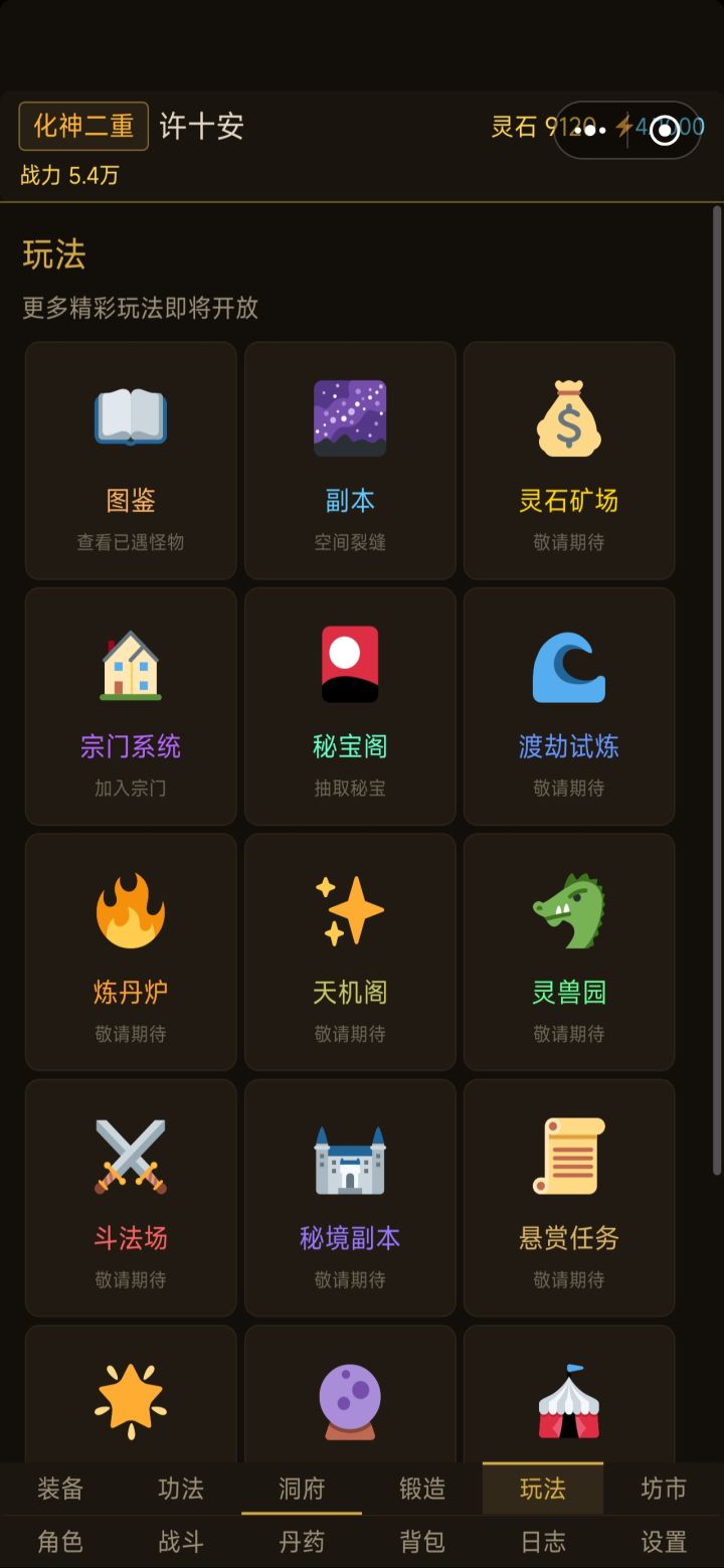 🎮可玩性:适合上班打发时间玩的,文字一类修仙休闲游戏,玩了快两天了,蛮好玩的,就是现在玩法有点太少了,希望后续把这些玩法快点更新上来吧。