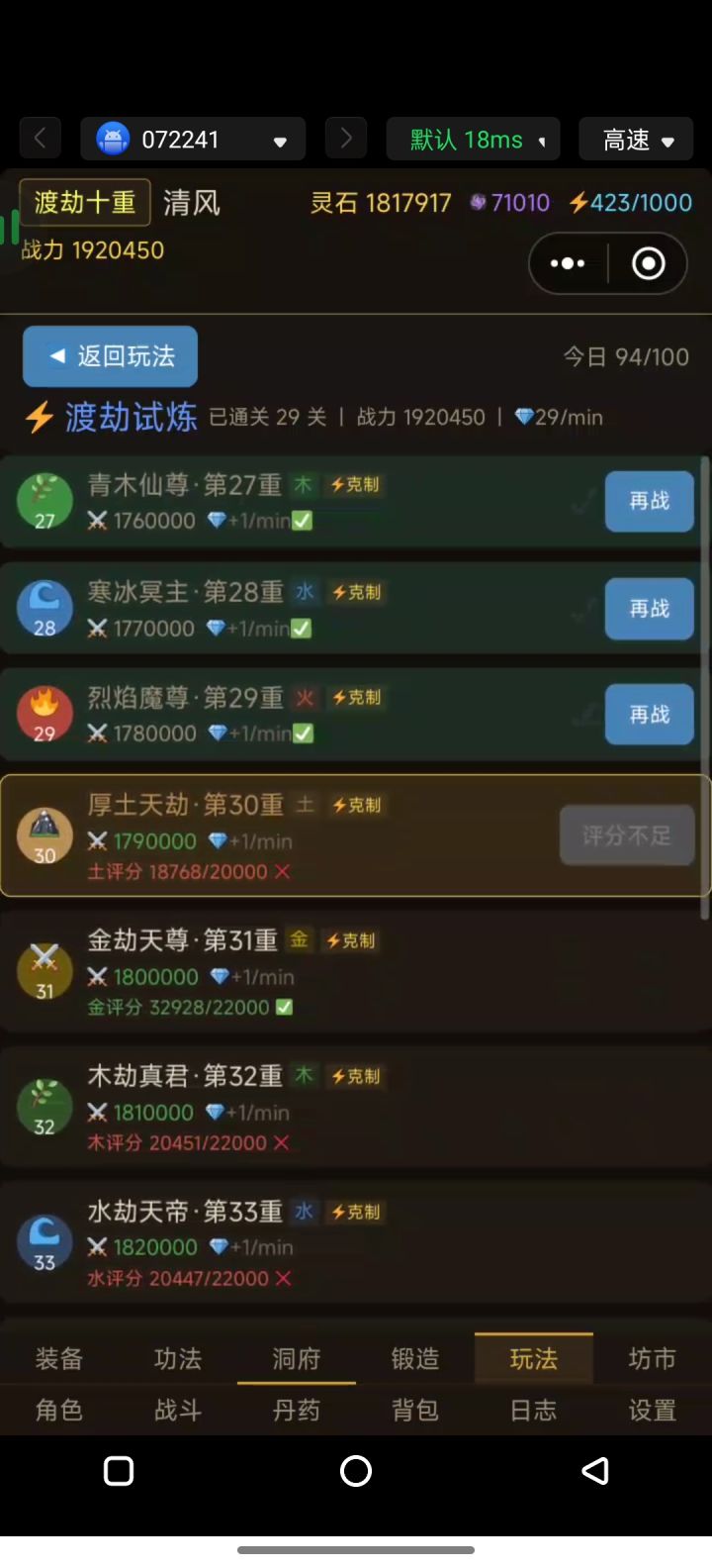 两天了,昨天金丹8重5w修为,今天金丹8重7w修为,那2w修为还是在线挂出来的