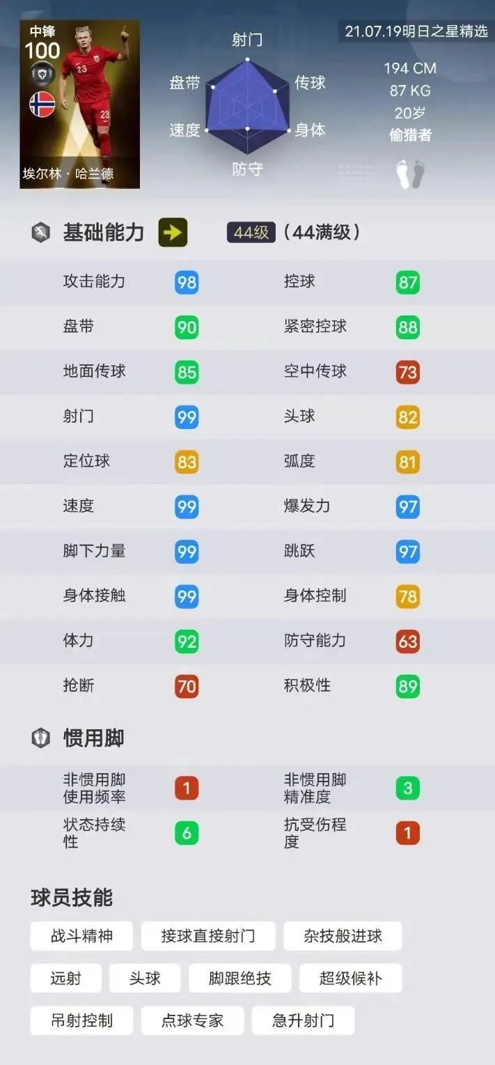 一.长传冲吊打法球员分析 再来看游戏中,我相信大多数的玩家都会多多少少因长传冲吊的打法头疼,一是因为这种打法会使得比赛过分无趣,一味的拿球长传冲吊只能使得游戏节奏过快且枯燥,二是这种打法还确实比较难防,尤其是时刻精选横流的现版本。 像精选哈兰德、精选奥西姆亨、精选莫拉塔、时刻因扎吉等这种自带超级替补的球员基本上打长传冲吊流都是很可怕的存在。他们基本上都会在下半场出场,然后以一个极其具有冲击力的中锋