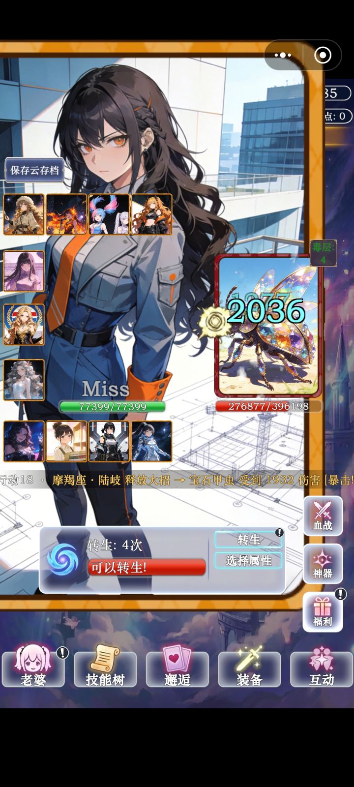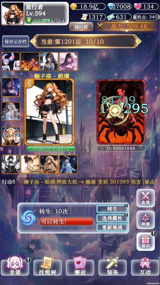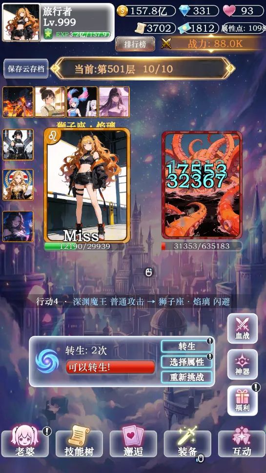 1.运行越来越卡。2.回档/转生礼物清空,属性丢失。3.血战太耗时,不能扫荡或者从最高层接着爬。4.传说装备不能一键分解。5.其他。长时间不更新,我玩了两个星期,至少1和2这样亟待优化修复的问题一直都没有处理,凭什么让大家相信作者会把这款游戏认真做下去,不过是"到此为止"了的漂亮话。
