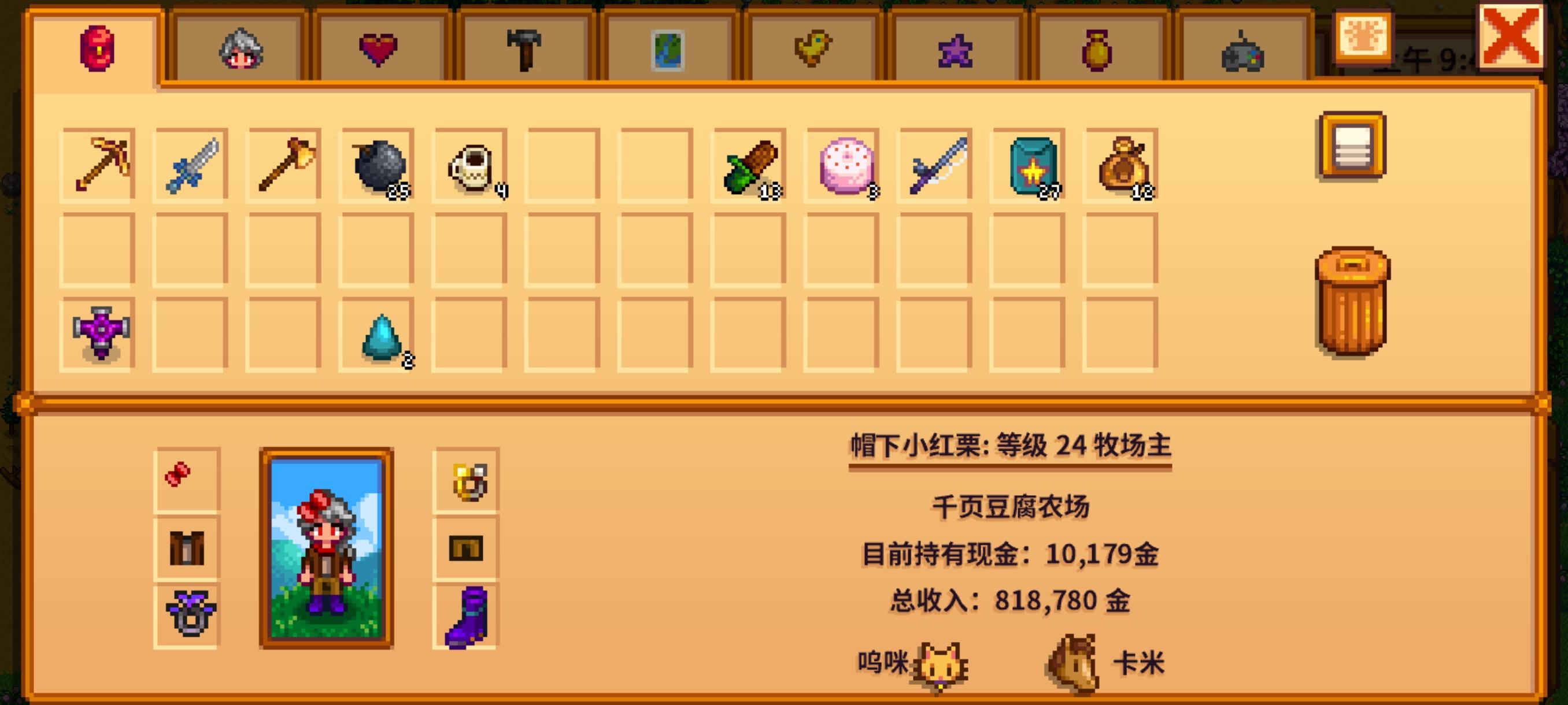 #发现好游戏 #星露谷物语 #星露谷物语手机 一年啦~从无到有经历了许多,从发垃圾桶导致多了一个帽子,第一次进入矿洞的无力感,第一次修复社区但是没人欣赏等等,我好像在这个游戏上注入感情了,当然新的一年新的开始~好不容易闲下来的农夫又要忙碌啦~(老婆潘妮,小小的一个可可爱爱ෆ╹ .̮ ╹ෆ#游戏讨论
