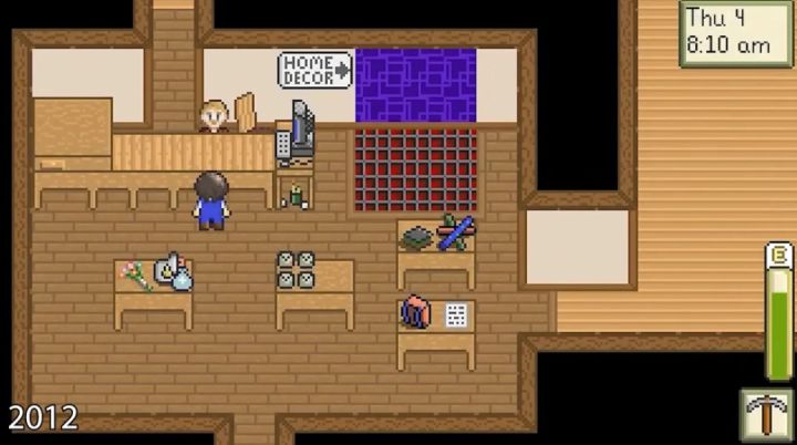 这是我第一次玩星露谷物语的照片,和一个月以后的照片,我在夏天一直种向日葵一直把品质最好的送给海莉,也是成功的和海莉结婚了😄