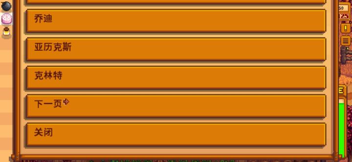我是在手机上玩儿的星露谷,昨天新下载的邮箱服务mod,今天想着上游戏试一试。一开始送任务物品、升级工具什么的都挺正常的,就当我准备给哈维送生日礼物的时候,发现这个送礼界面太大了,最上面的名字看不到,只能靠猜。点开mod菜单里面也没有能够修改尺寸的选项什么的,所以就来求助了,希望懂的大佬能够帮帮忙 :-C
