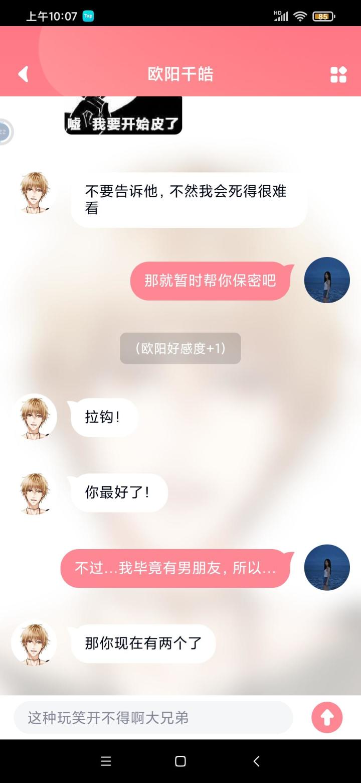 记得当时打果果,有一个结局是没有在一起(好像是),但是果果给女主发了一个视频,是拍着电脑录了一小段歌 !超好听!很想要这个视频呜呜呜在哪都找不到。°(°¯᷄◠¯᷅°)°。