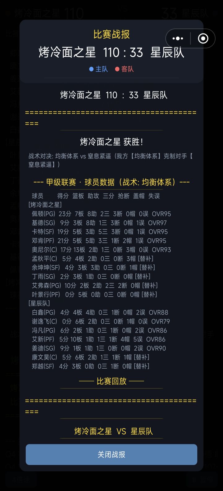 玩了几个小时感觉没追求了,已经三连冠了,能不跳过比赛过程直接呈现比赛结果