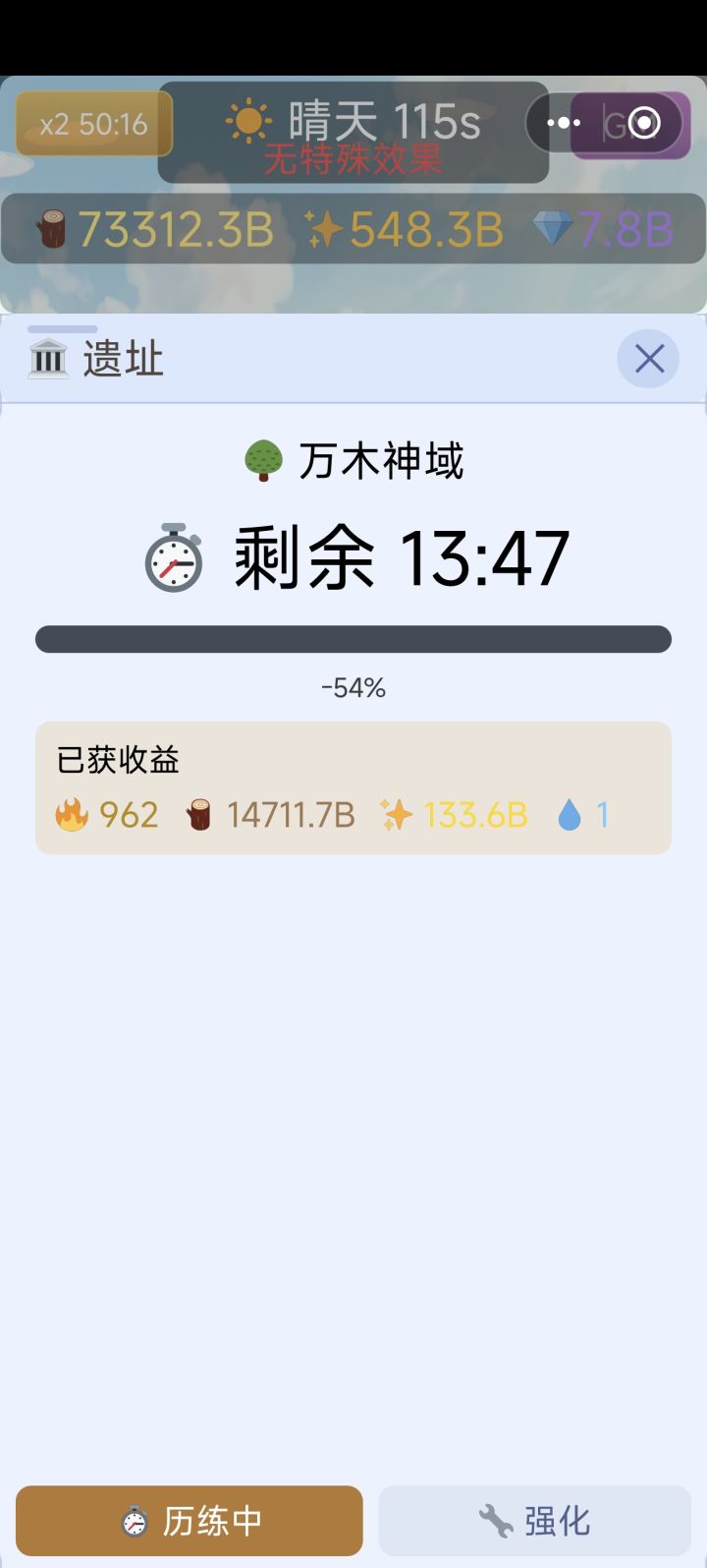 强化点满了,时间越来越多离线历练时间不动灵泉bug还没修复