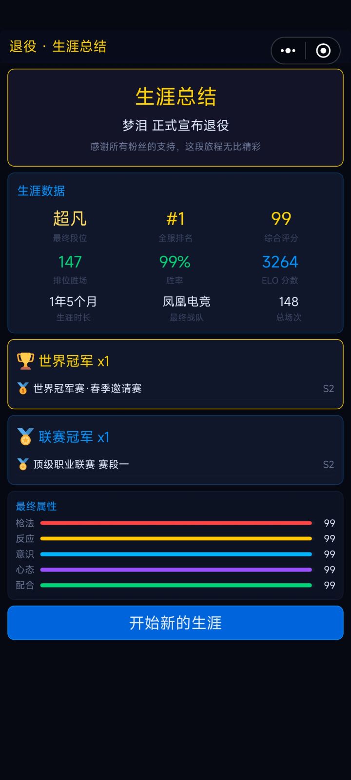 【年度选手排名】每年年终,IESN 将根据全年表现评选年度最佳选手 Top 20,排名依据包括联赛战绩、个人数据(击杀/死亡比、MVP 次数)、战队成绩等综合评选。排名结果将以新闻公告形式推送,可在新闻页回顾完整榜单。训练系统属性成长曲线调整,战队经营运营优化,大幅提高了各级别战队的月运营开支(基地租金、教练组、分析师、内容团队等)。【新增全球战队积分排名系统】覆盖四大赛区战队。世界战队排