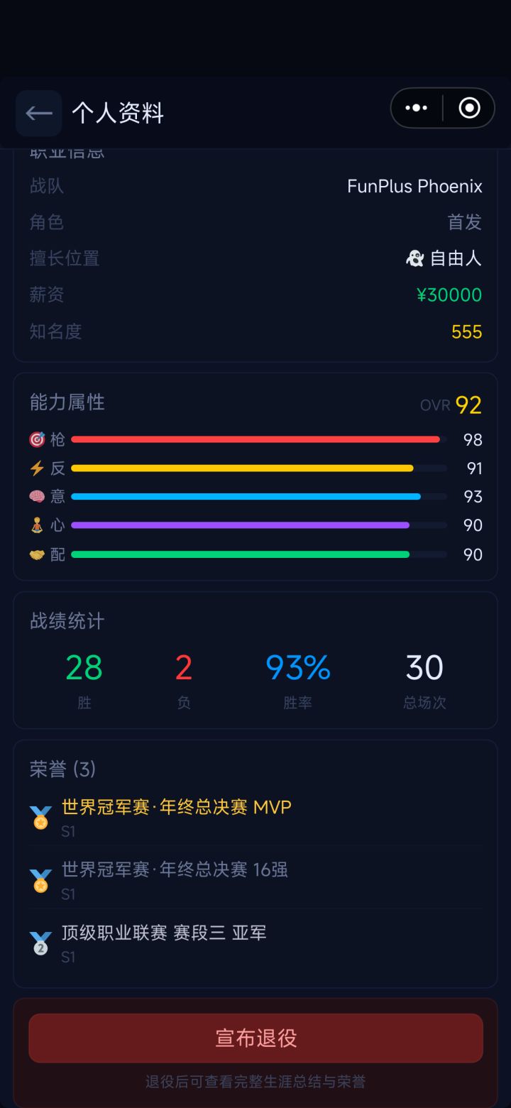 干最累的活,拿最少的钱作者大大可否出一个训练队友的和换队友,大龄队员的Ovr每年都会降低。这可能会影响成绩(虽然说问题不大)还有就是工资分成有点低了,虽然不差钱,但为啥感觉看着膈应对了,还有续签,期限到了又要重新去找战队,有时候老东家不给你发邀请函,就只有先签一个战队后面去跳槽,又或者是去市场转会emm..