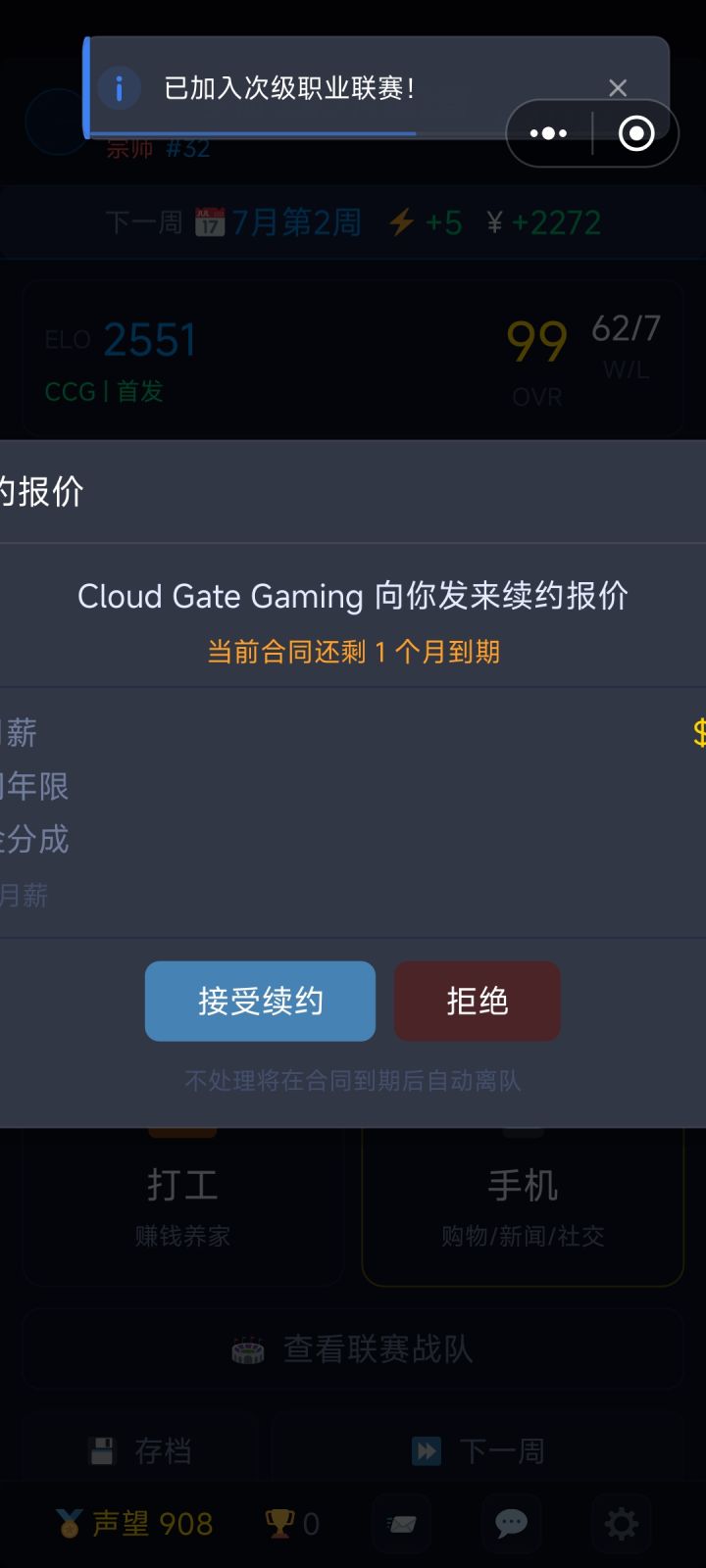干最累的活,拿最少的钱作者大大可否出一个训练队友的和换队友,大龄队员的Ovr每年都会降低。这可能会影响成绩(虽然说问题不大)还有就是工资分成有点低了,虽然不差钱,但为啥感觉看着膈应对了,还有续签,期限到了又要重新去找战队,有时候老东家不给你发邀请函,就只有先签一个战队后面去跳槽,又或者是去市场转会emm..