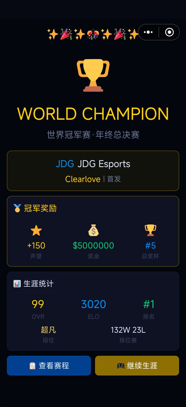 ui改一下 有点遮住了 页面图标文字再大一点所以按钮加大加粗 底部的 金币奖杯全部合并在顶部顶部加日期时间 时间自动走 可以跳过到下一周图1 底部的宣布退役可以其他位置 放这里会时不时点到图2 ui可以改一下 每个战队的后面加上简称 每个赛段4强到冠军放在赛段中间 阶梯式 底部的战队积分和历年冠军可以单拎出来做一个放在主页面图骗3 战队信息可以改版一下 例如顶部一排标签栏 战队信息(