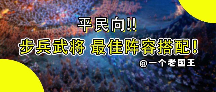 更多视频/攻略 关注公众号:一个老国王 大家好我是老国王 最近国服正值K2前置期间 想必小伙伴们更是肝报废 有好多新手玩家后台问我 老国王我现在才玩几天将不行咋办啊? 怎么办? 老国王强烈推荐兄弟们练起来步兵! 俗话说得好 穷玩步 富玩骑 是因为能上战场的骑兵诸如曹源全都要氪金 而进阶骑兵如铁木真更需要大量钻石及通用金头来养 萨拉丁我相信很多朋友更是上不了MGE排名 这个时候肯定会有朋友说有贝利和