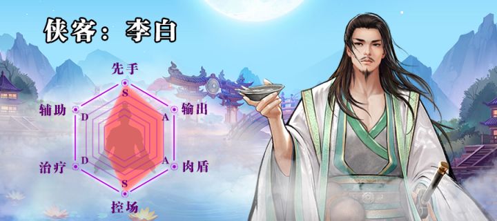 侠客:李白定位:先手、控制武器:剑所在地:长安城---广场---醉仙楼---雅间获取方式:200李白信念合成侠客简介:作为乙级侠客中控制最好的侠客,适合往先手方向培养,在学习无名剑法后,配合其专属内功侠客行释放绝招时对全体敌人几率触发点穴,先手控制打法必备伙伴,没有之一。伙伴搭配:最佳生存伙伴:李 靖 可提升整体队伍生存能力。最佳输出伙伴:袁天罡, 可提升袁天罡稳定输出能力。【技能