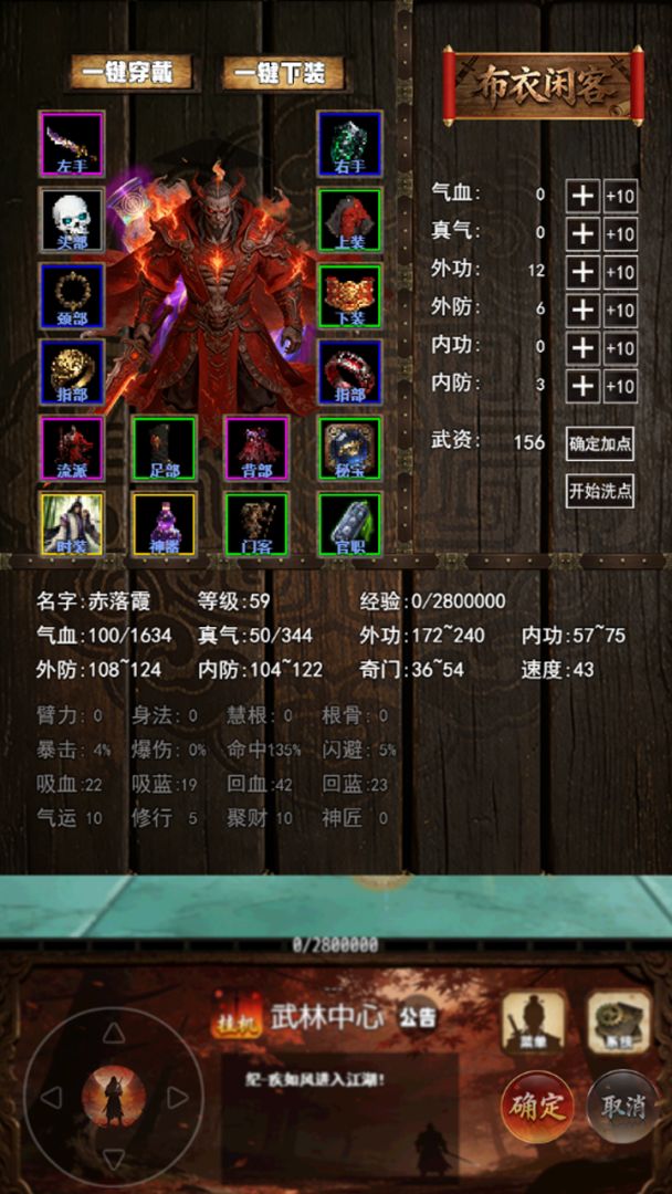 一个简单的武林复古挂机游戏,适合慢热肝装备的玩家。