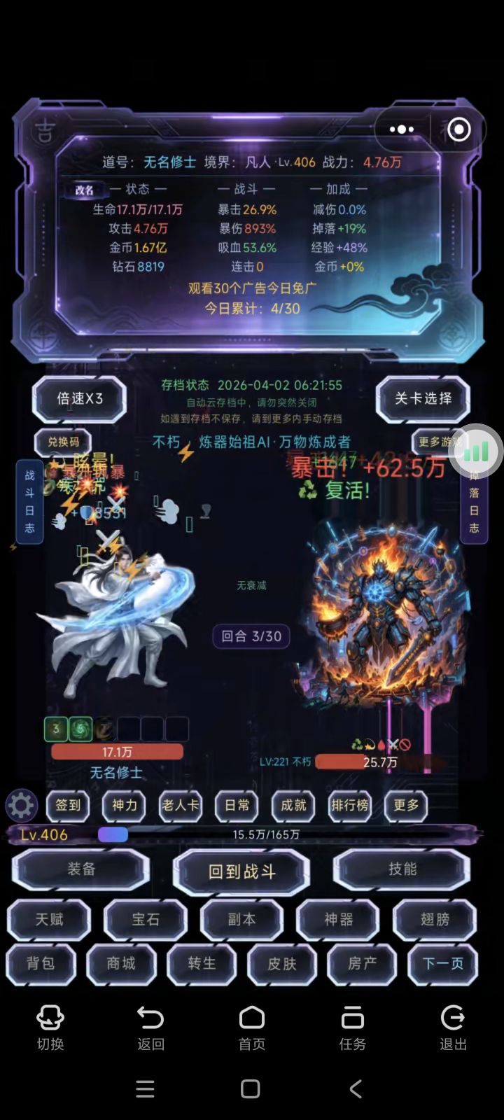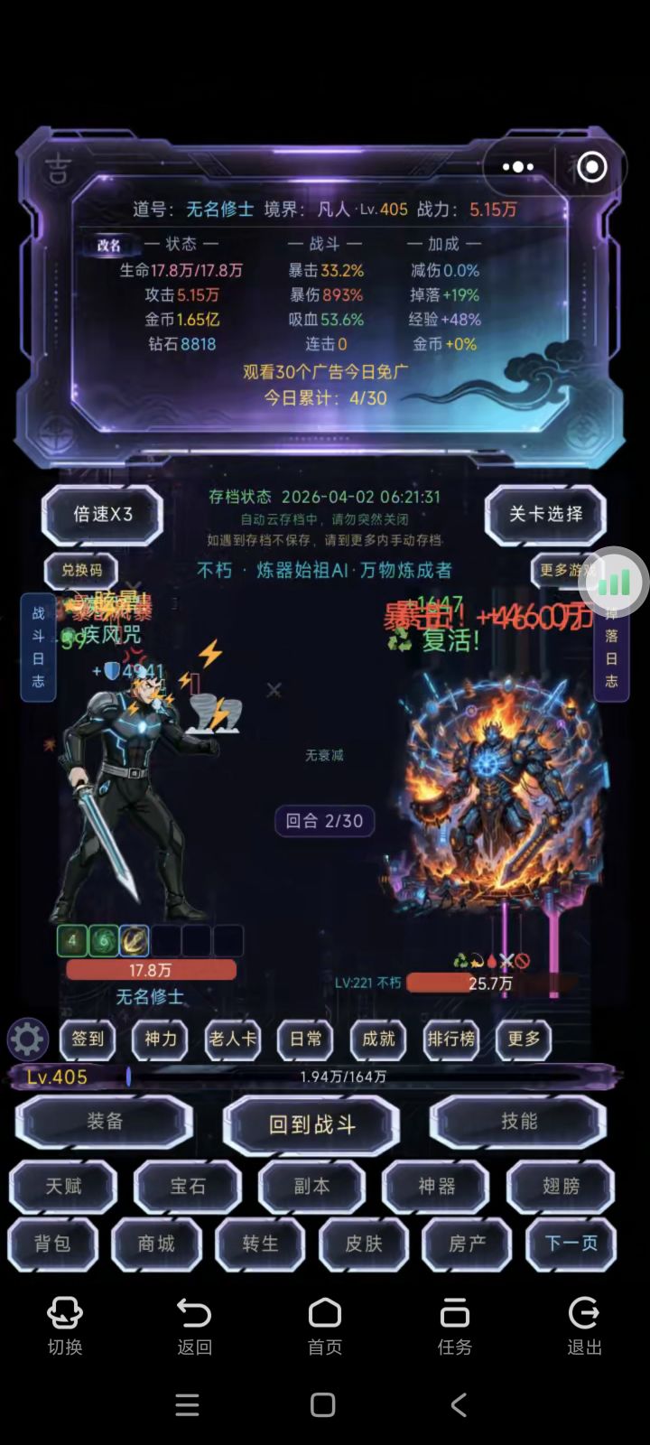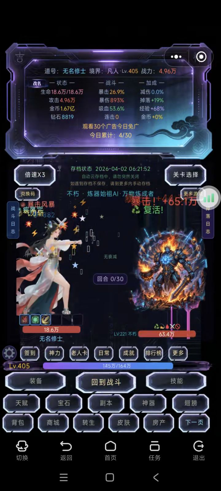 #挂机封神记 词条几乎刷满了套装用的无极差一件满转生30次(好像还高一点还能怎么大幅度的提