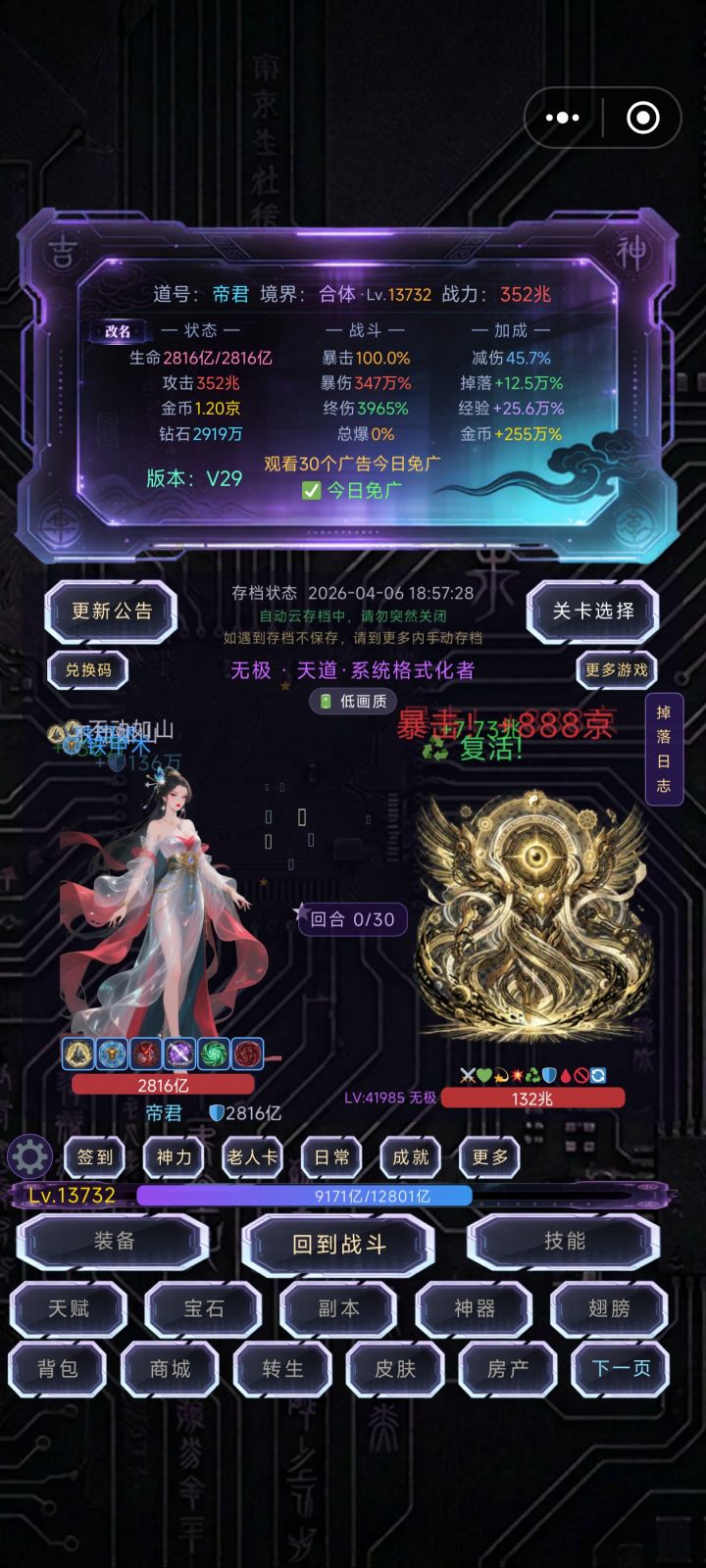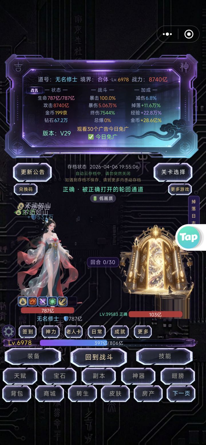 玩到现在的不用多说,50000轮回石给了前进的动力,不知道后面关卡什么时候开。