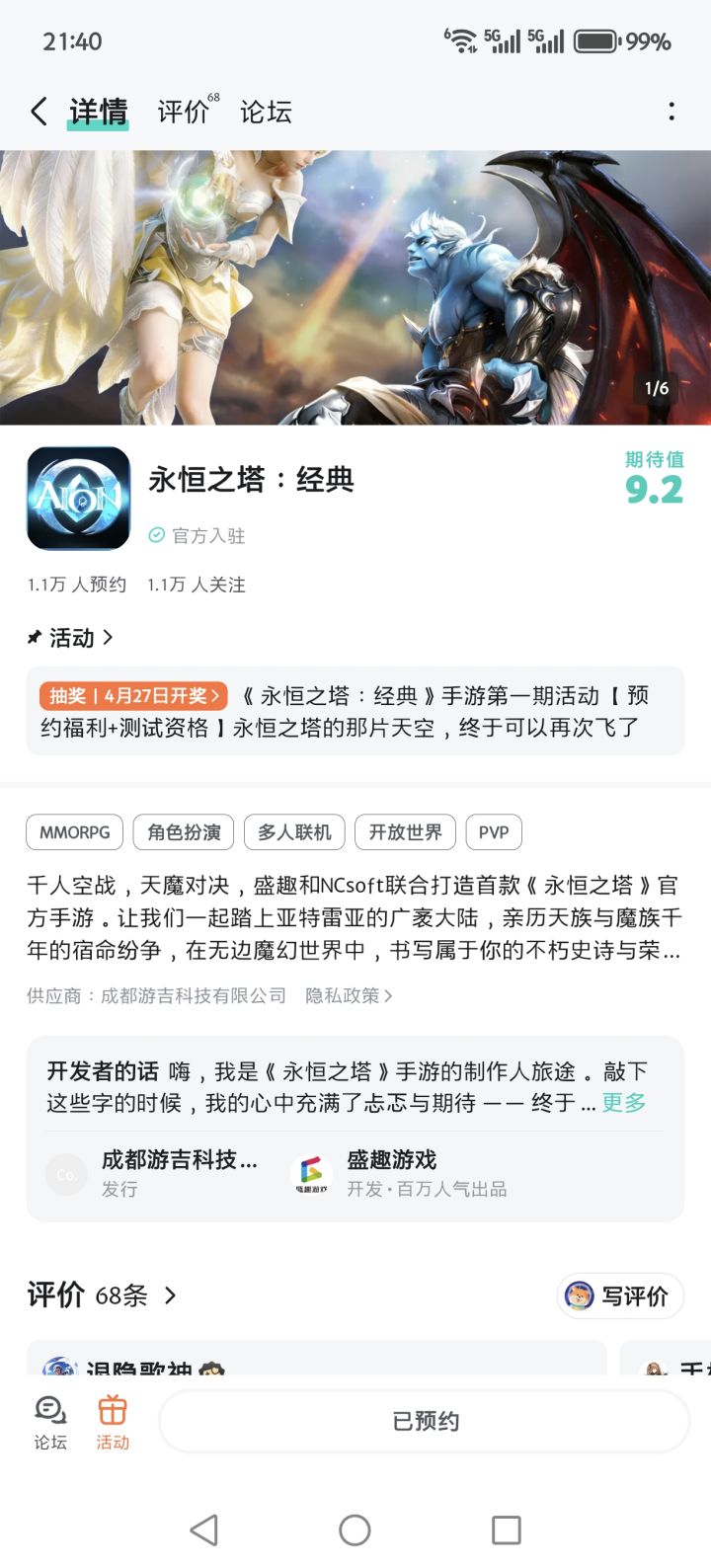 1.预约游戏,在评论区晒预约截图
