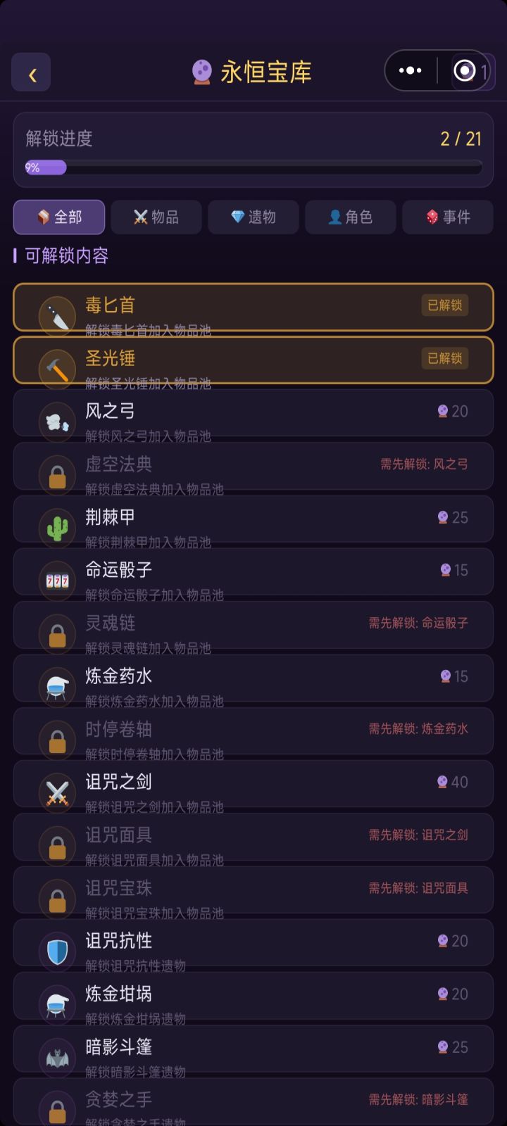 外围养成可通过战斗获得的碎片,解锁更多装备、角色、遗物等内容,已解锁的装备就会随机出现在游戏中,让通关变得更有优势。